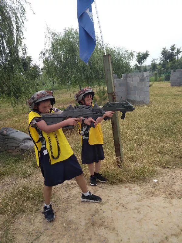 今天教练告诉我们学习科目是真人CS对抗赛。这次规则和上次不一样,先分成红、蓝两方,在各自的区域埋伏,等待“敌人”的进攻。经过一场激烈的战斗,我们红方不小心败下阵来。可是我们没有气馁,经过教练的讲解和大家的鼓劲,我们在心里憋了一股劲,下一场一定要打赢蓝方。果然功夫不负有心人,第二场比赛我们齐心协力以6:9的成绩打赢了这场比赛。我们心里开心极了!