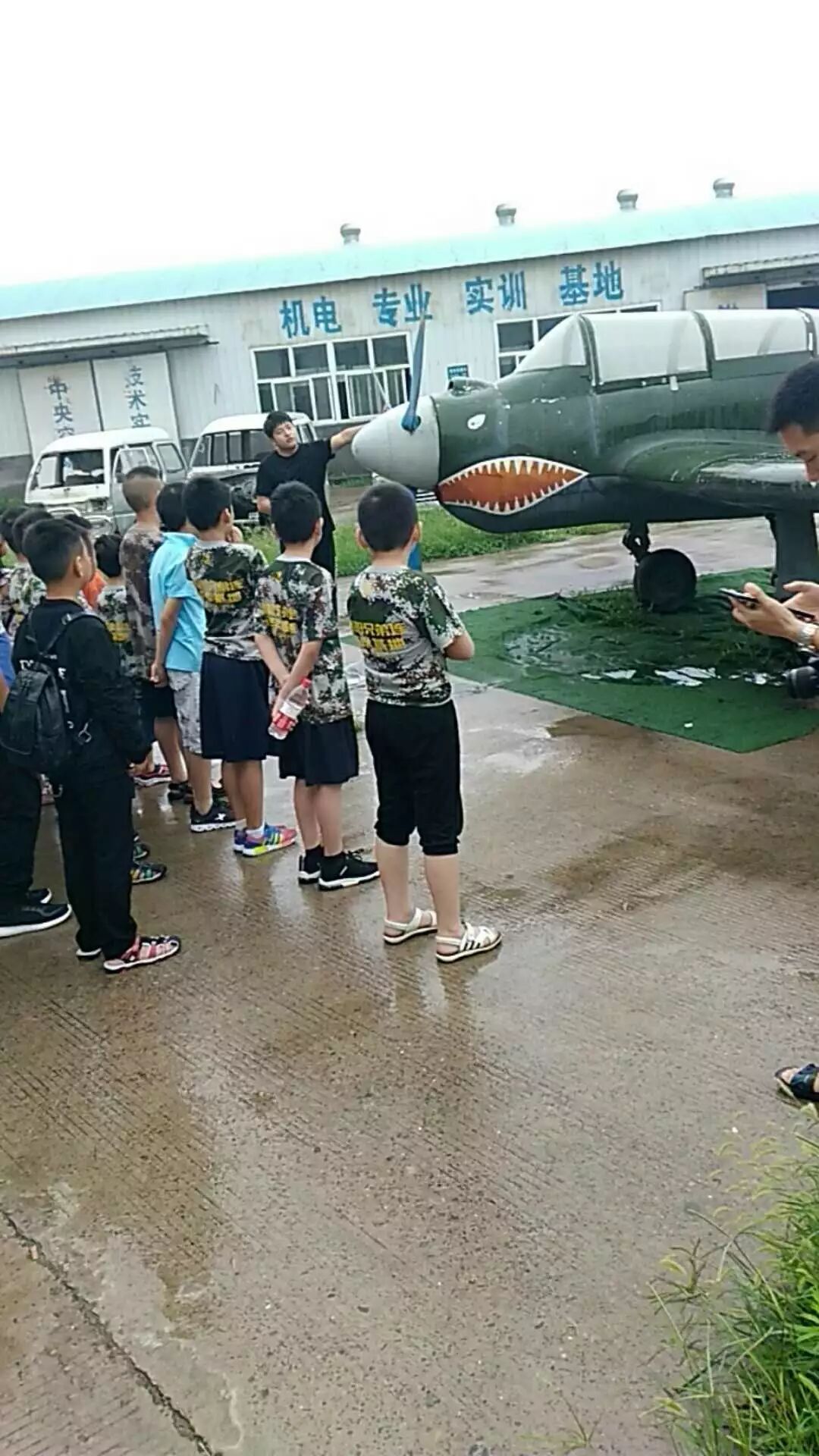 今天早上我们在学校门口集合,看见好多好朋友都参加了,我更是开心极了。坐了好久的车,终于到了洛阳兄弟连培训基地。首先看见的是草坪上的飞机、大炮、坦克。我一下子被惊呆了,因为这是我第一次看见真正的飞机大炮,内心无比喜悦,更是期待这次航模夏令营了。