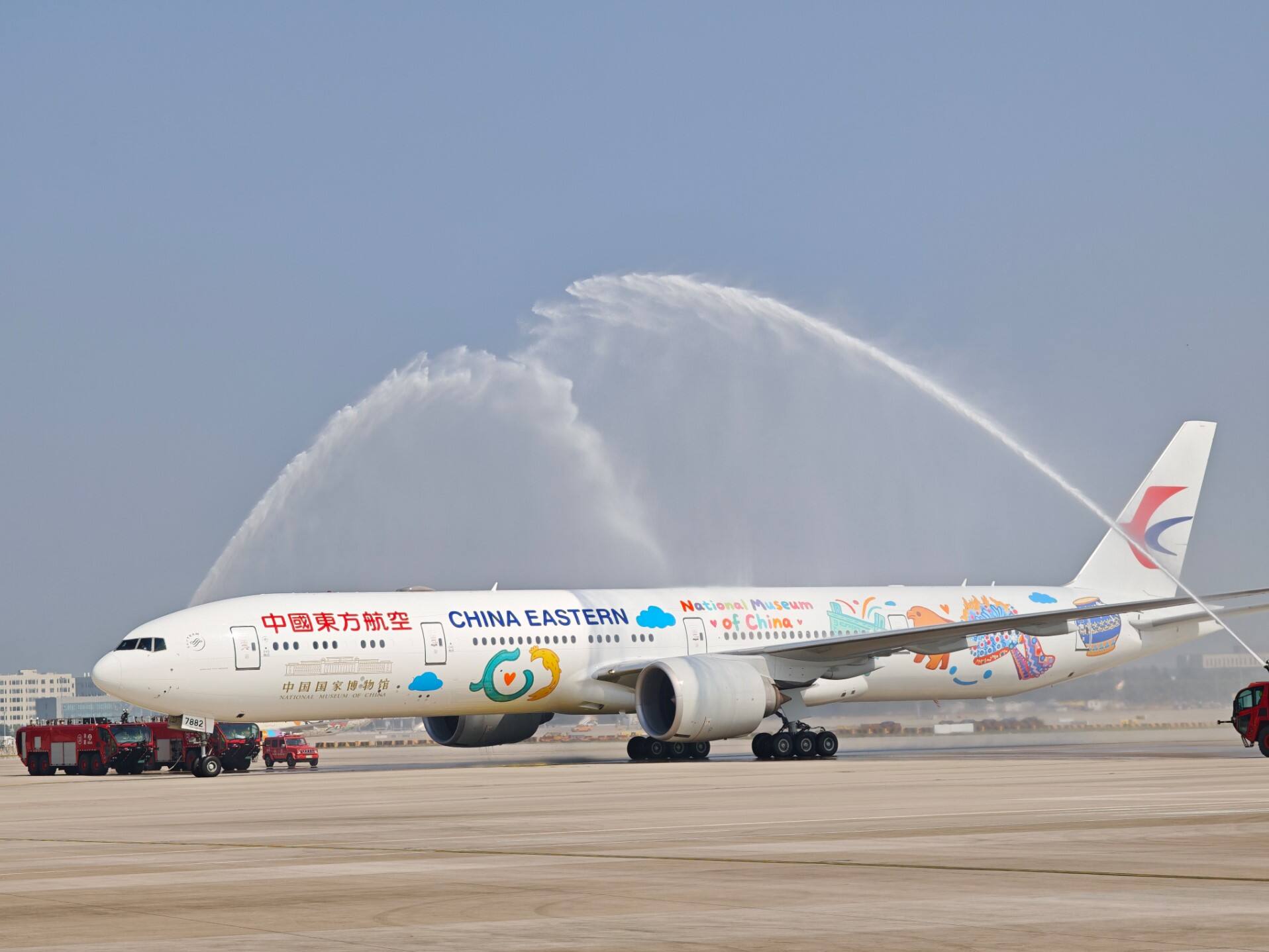 2024年12月20日,东航与国博签署战略协议,明确在文旅发展、文物运输、航旅创新与文化传播等领域开展深度合作。“国博号”主题彩绘飞机便是东航与国博深化战略合作的重要成果。为纪念这一里程碑时刻,在9月29日首航航班起飞前,双方在北京大兴国际机场举行了首航仪式。