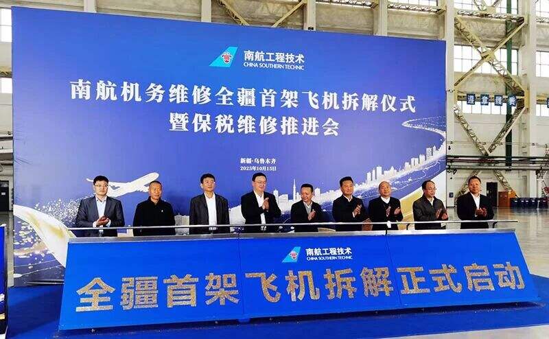 10月15日,南航工程技术新疆基地(以下简称“新疆基地”)成功举办新疆辖区内首架飞机拆解仪式,标志着民航新疆地区航空器全产业链闭环管理实现“零的突破”,正式迈入航空循环经济这一高价值领域。此举不仅是南航在飞机全生命周期管理领域的又一次重要突破,更是南航机务响应国家绿色发展战略、践行民航循环经济发展理念、优化产业发展布局的关键一步。